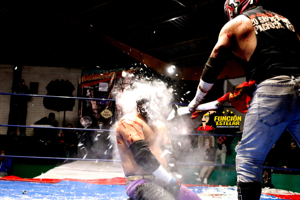 La lucha extrema alcanzó su punto más dramático cuando aparecieron las lámparas de halógeno, utilizadas como armas improvisadas que arrancaron el grito colectivo de los aficionados.
