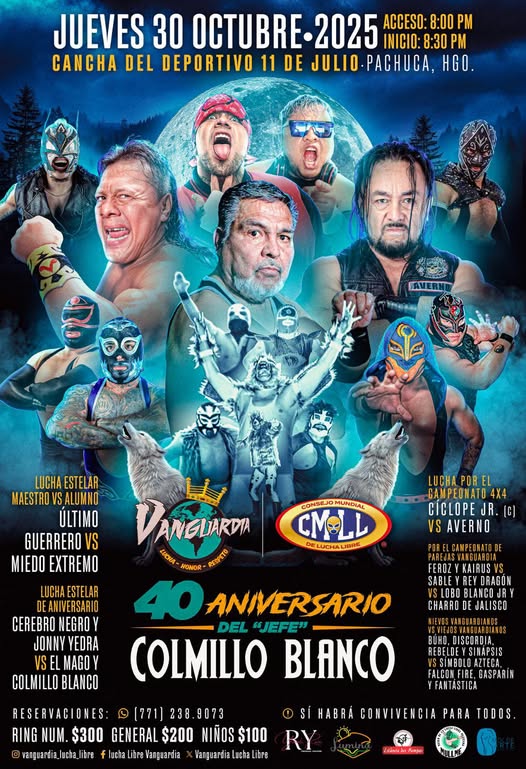 Para celebrar sus 4 décadas, Lucha Libre vanguardia promotora de la que forma parte del elenco central, organizó una función memorable que se realizará en las instalaciones de la Cancha Del Deportivo 11 de Julio, el jueves 30 de octubre, para la lucha estelar de este compromiso llega de parte del Consejo Mundial de Lucha Libre Último Guerrero.