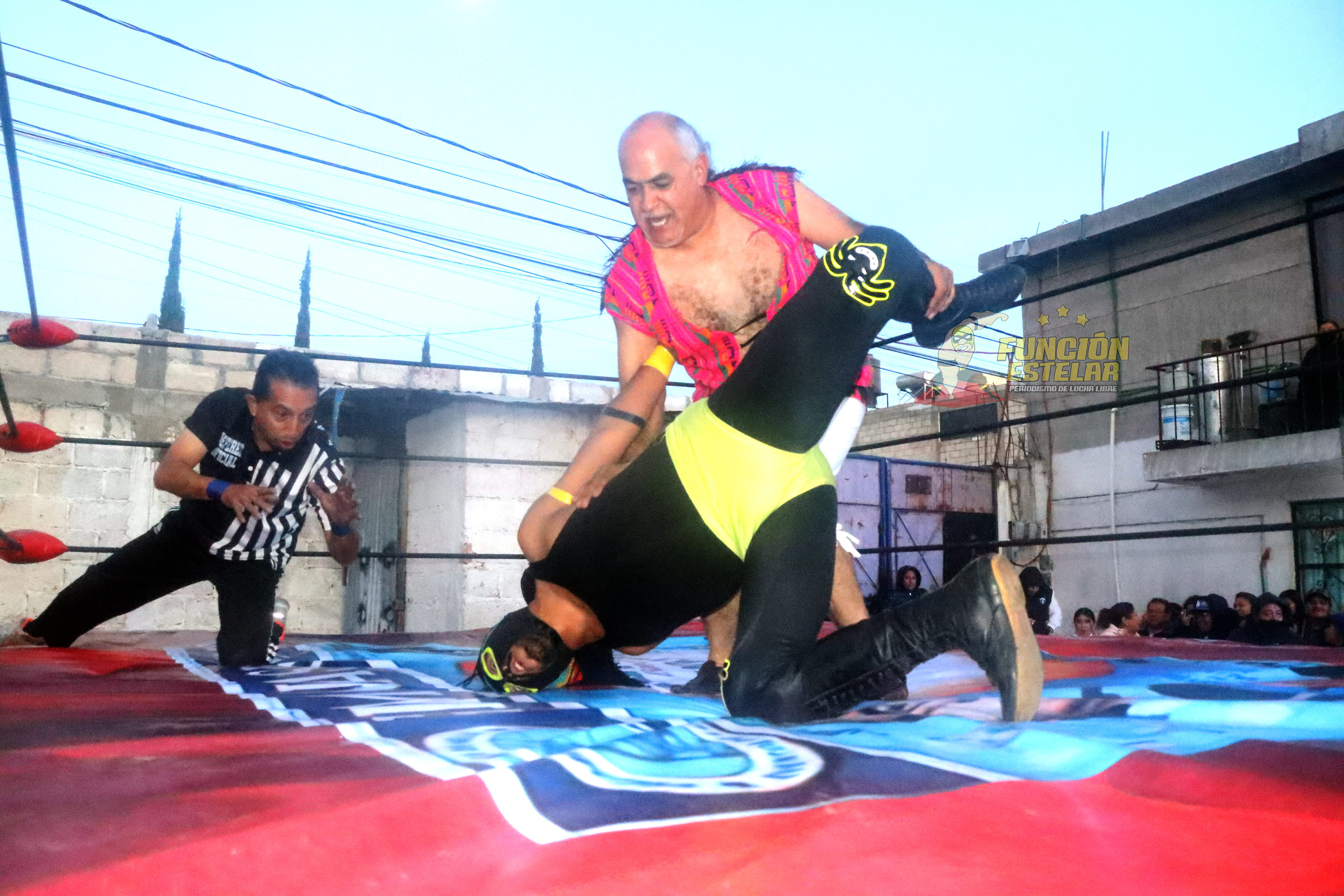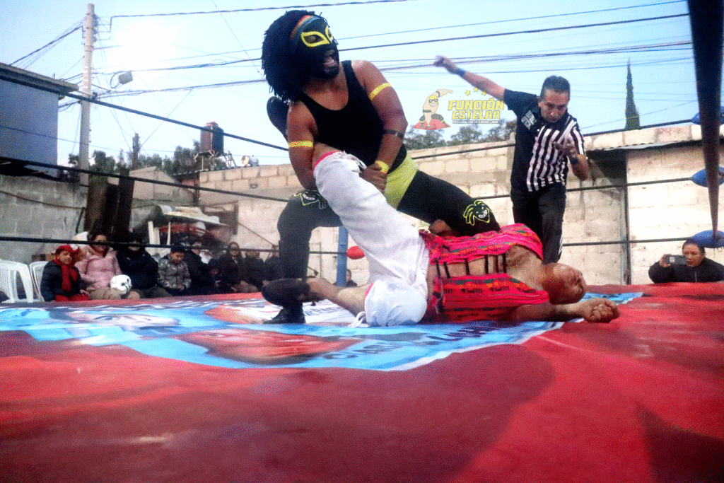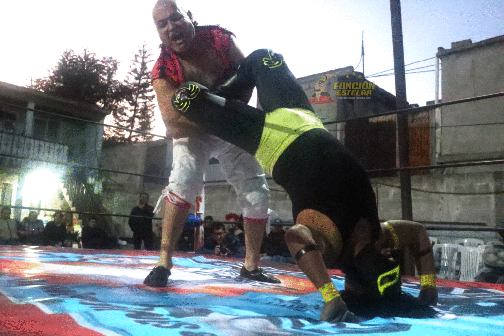 Campesino del Valle sabía bien que debía castigar con fuerza las piernas del Rastaman de la lucha libre hidalguense, el público aplaudía reconociendo las evoluciones de ambos guerreros.