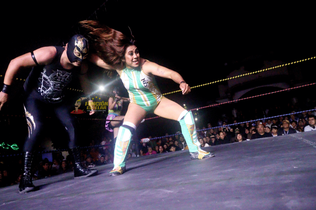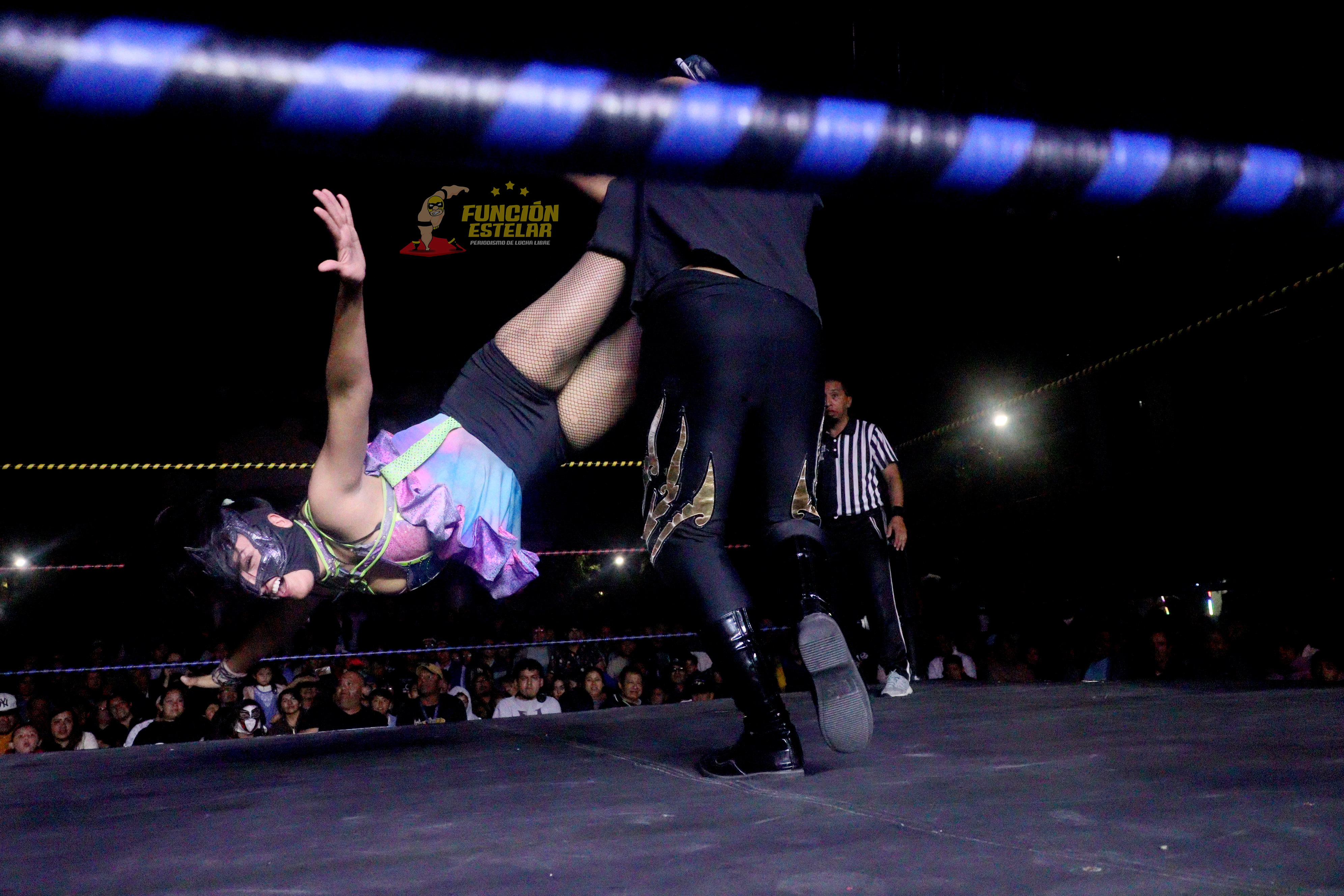 Una lucha en formato mixto fue la que se llevó a cabo momentos antes, en una esquina la ruda más complete y sabia de Tulancingo Zuzu Divine, y actual campeona Universal Attack subió acompañada de Nigth Bitch.