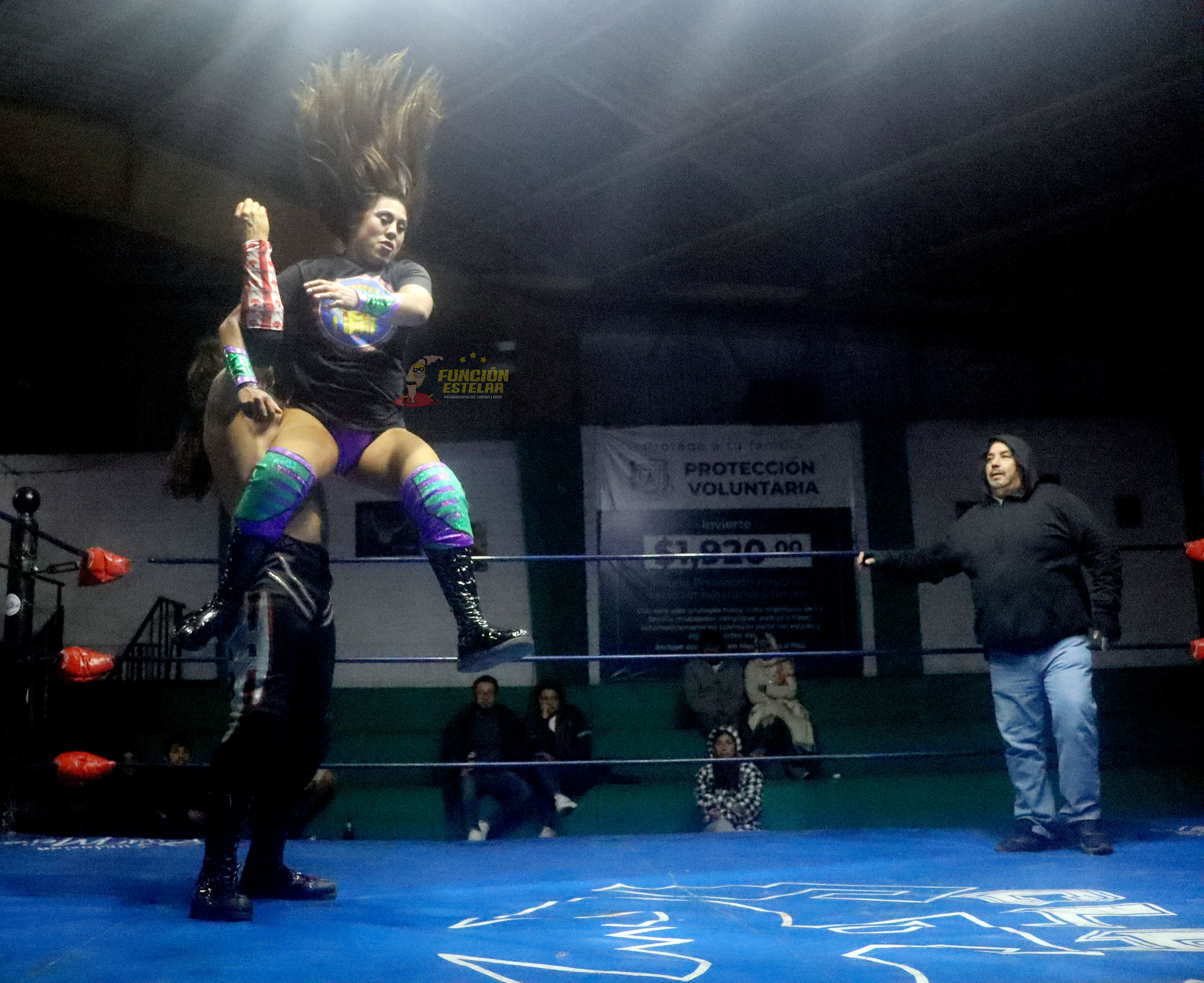 Una sola caída bastó para que el público del Deportivo 11 de Julio se entregara por completo a la dupla formada por Zuzu Divine y Dariux,