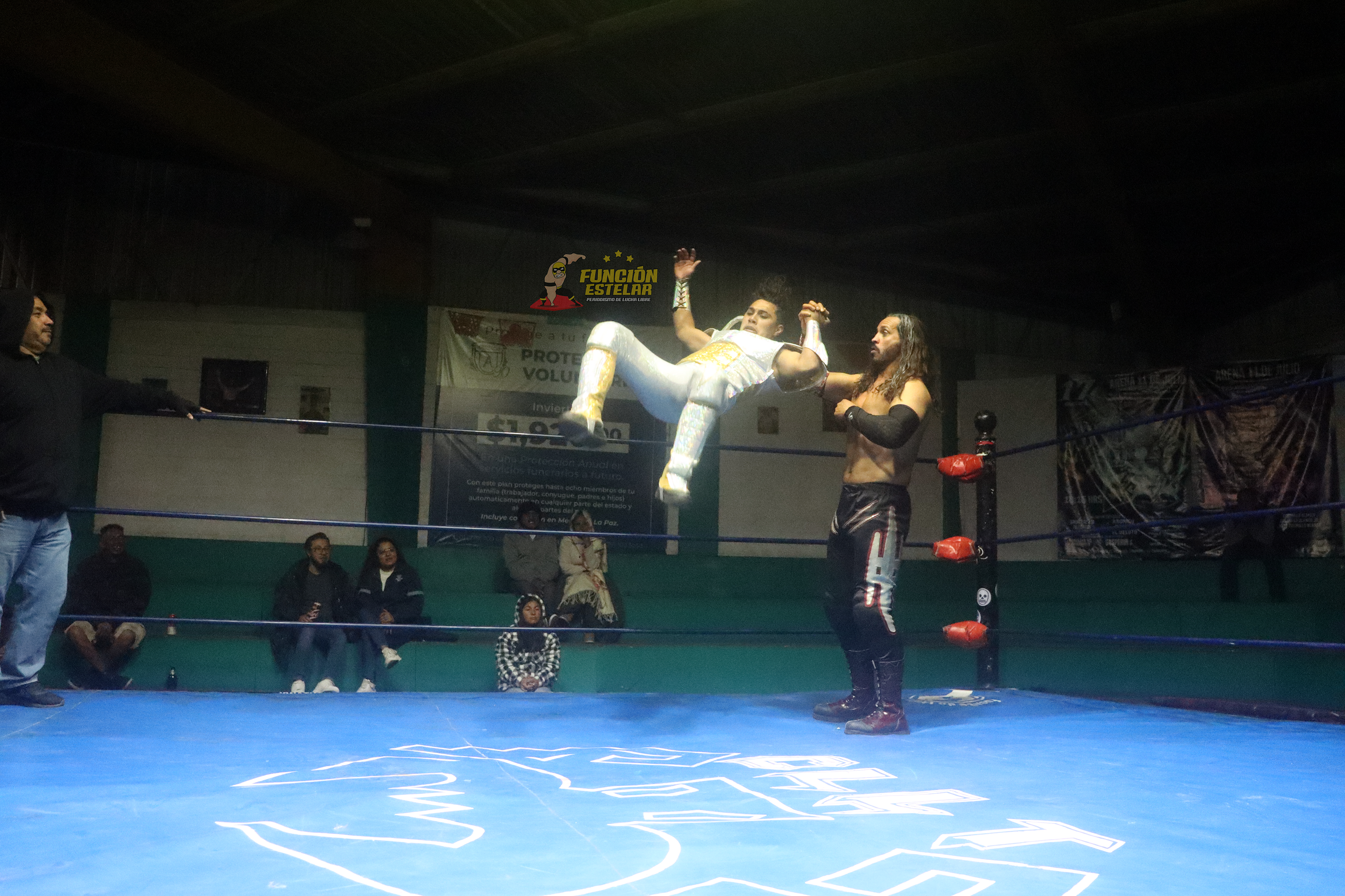 A su lado, Dariux complementó la ofensiva con una secuencia de barridas, topes y giros que sorprendieron incluso al imponente The Owen, quien intentó cortar el ímpetu de los hidalguenses con fuerza bruta.